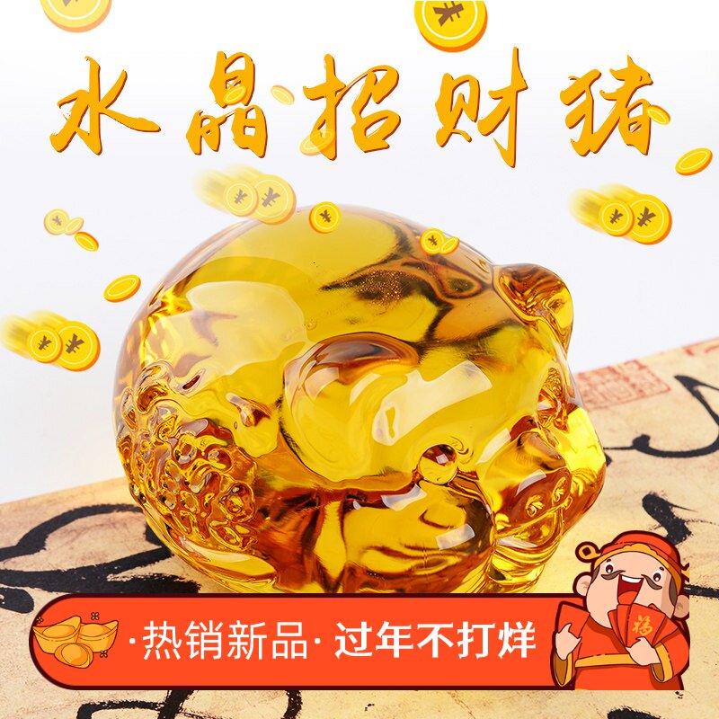 特价高档大小黄水晶猪招财摆件 猪年礼品生日礼物客厅家居装饰品