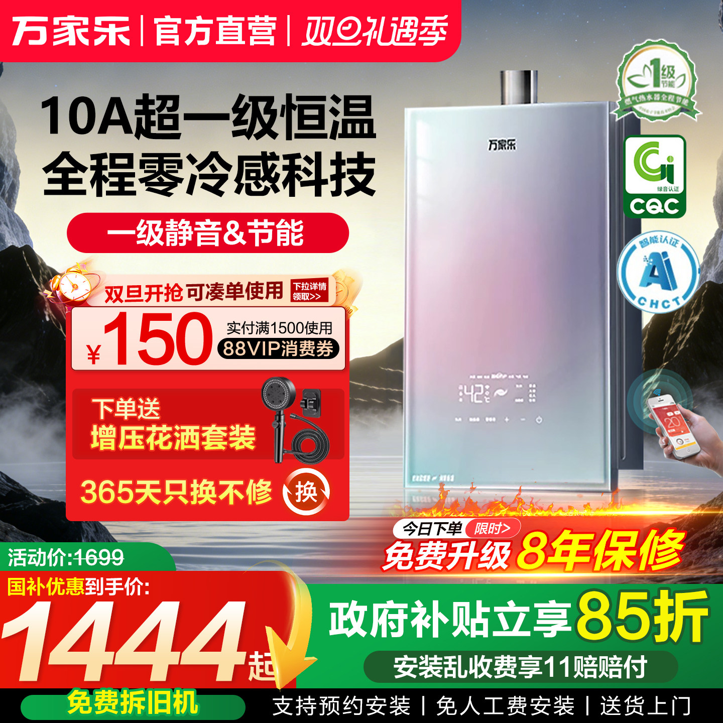 政府补贴万家乐安睡洗S9燃气热水器16升一级恒温节能增压静音天然