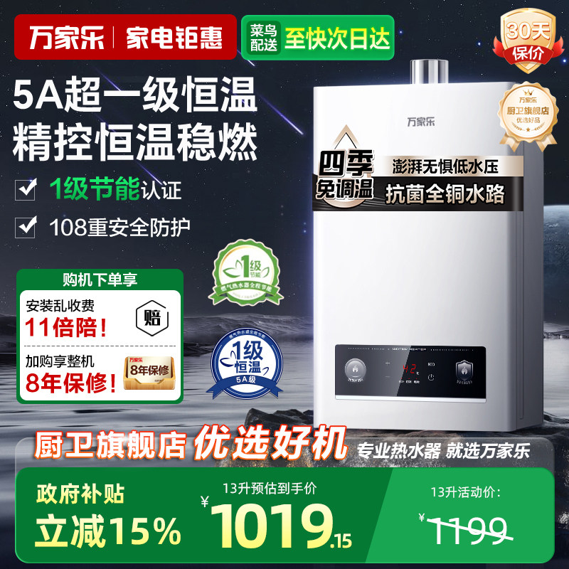 以旧换新补贴万家乐节能王天然气一级能效恒温家用燃气热水器U5R1