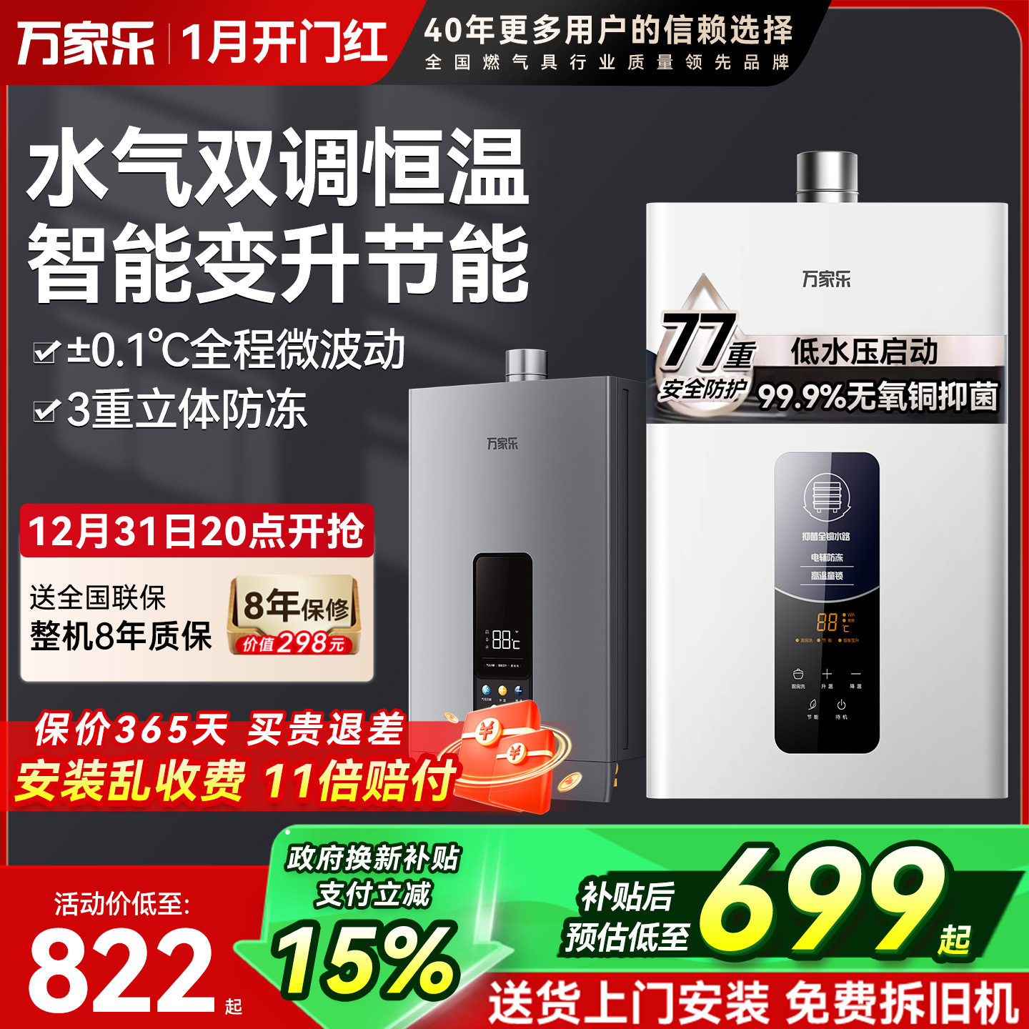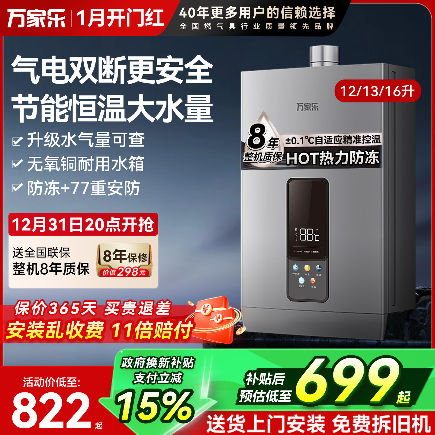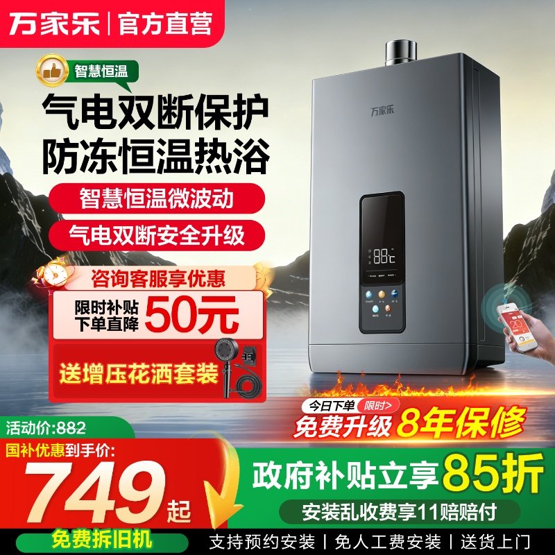 [政府补贴15%]万家乐平衡式燃气热水器浴室安装恒温天然气液化气