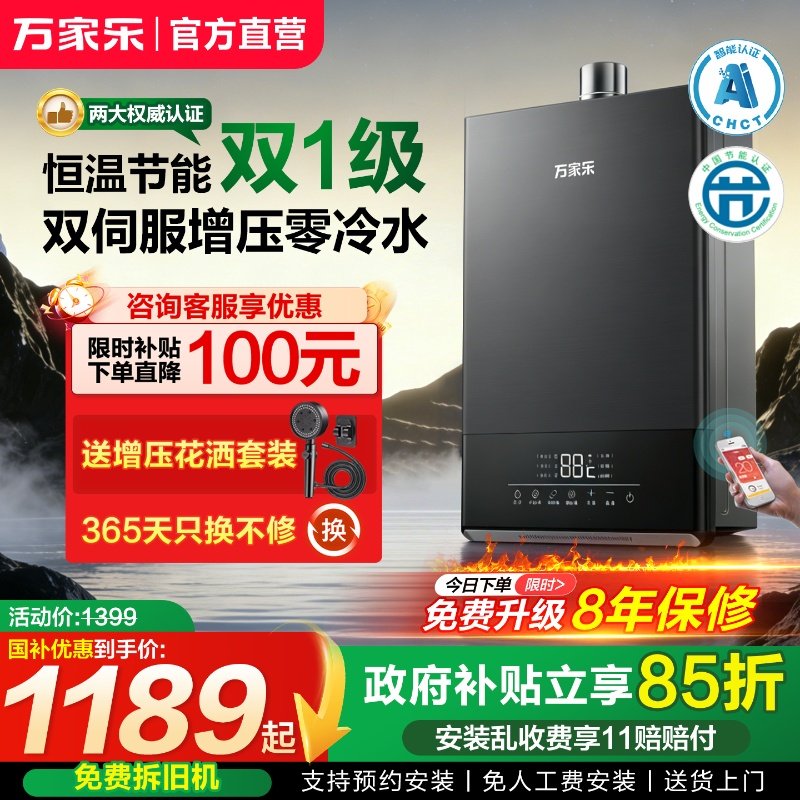 以旧换新万家乐燃气热水器家用天然气16升18双伺服增压零冷水回水