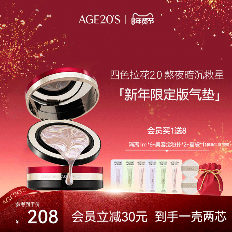 爱敬气垫遮瑕持久不脱妆age20s新款四色拉花官方正品黑金bb霜粉底