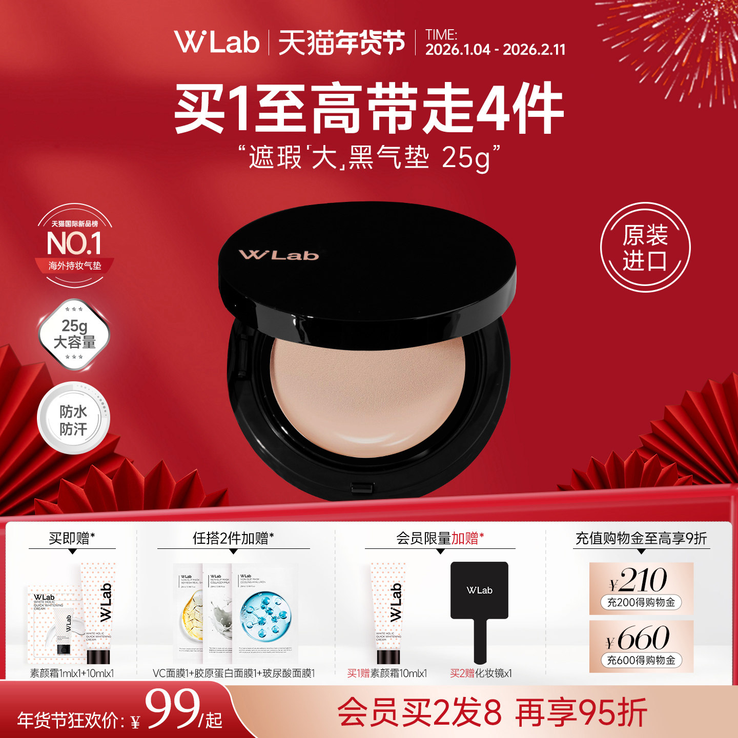 W.Lab大福留韩国大黑气垫遮瑕持久不脱妆网纱粉膏25g官方旗舰正品
