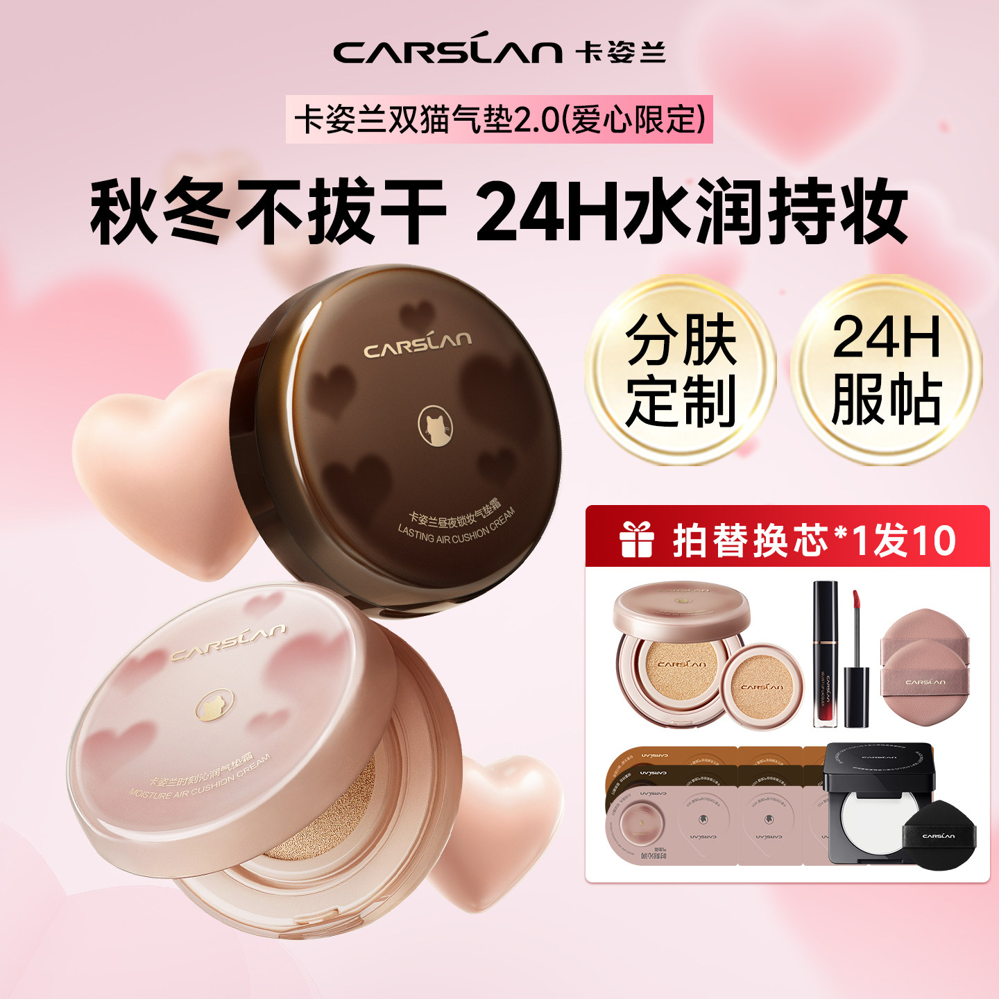 [新年礼物]卡姿兰气垫遮瑕持久不脱妆混干皮油皮小混猫粉底液官方