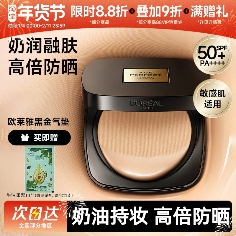 【新年礼物】欧莱雅黑金气垫遮瑕干皮防晒不脱妆奶润滋润油皮粉底