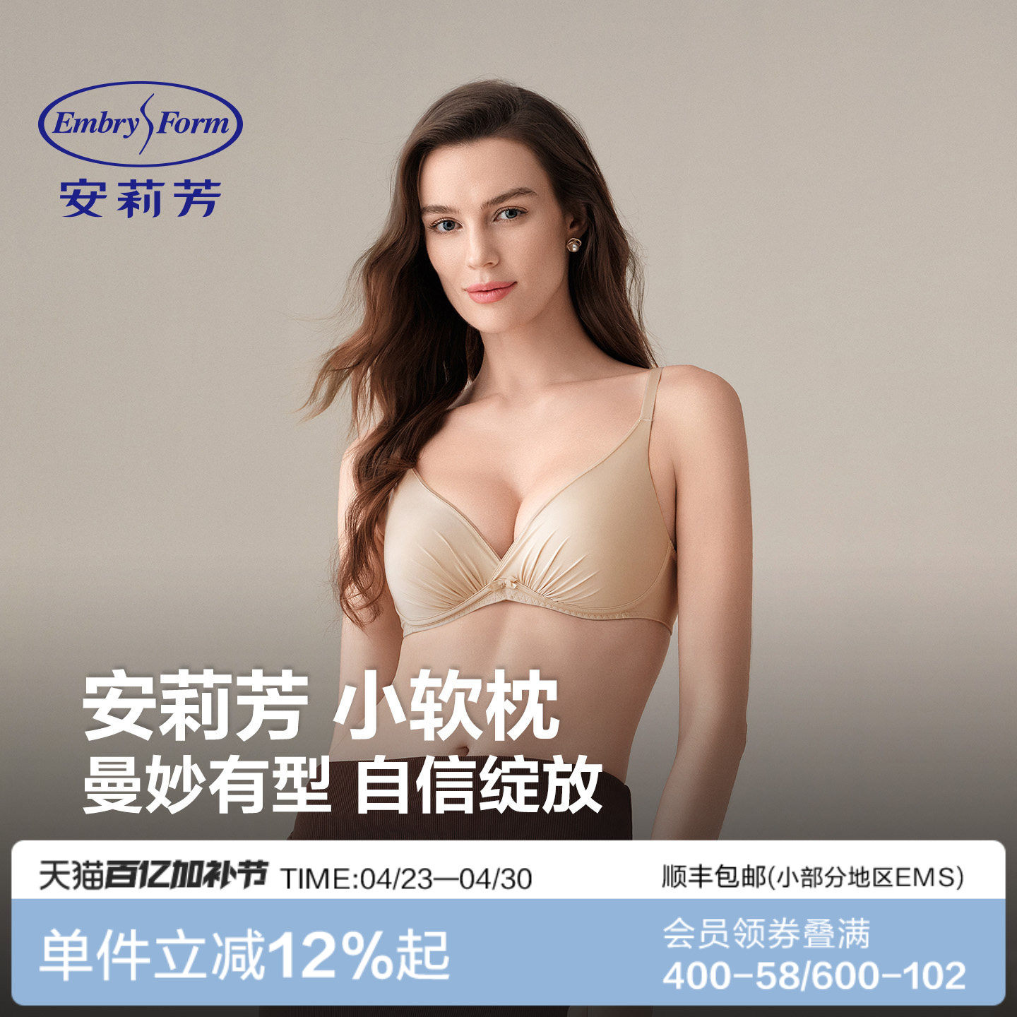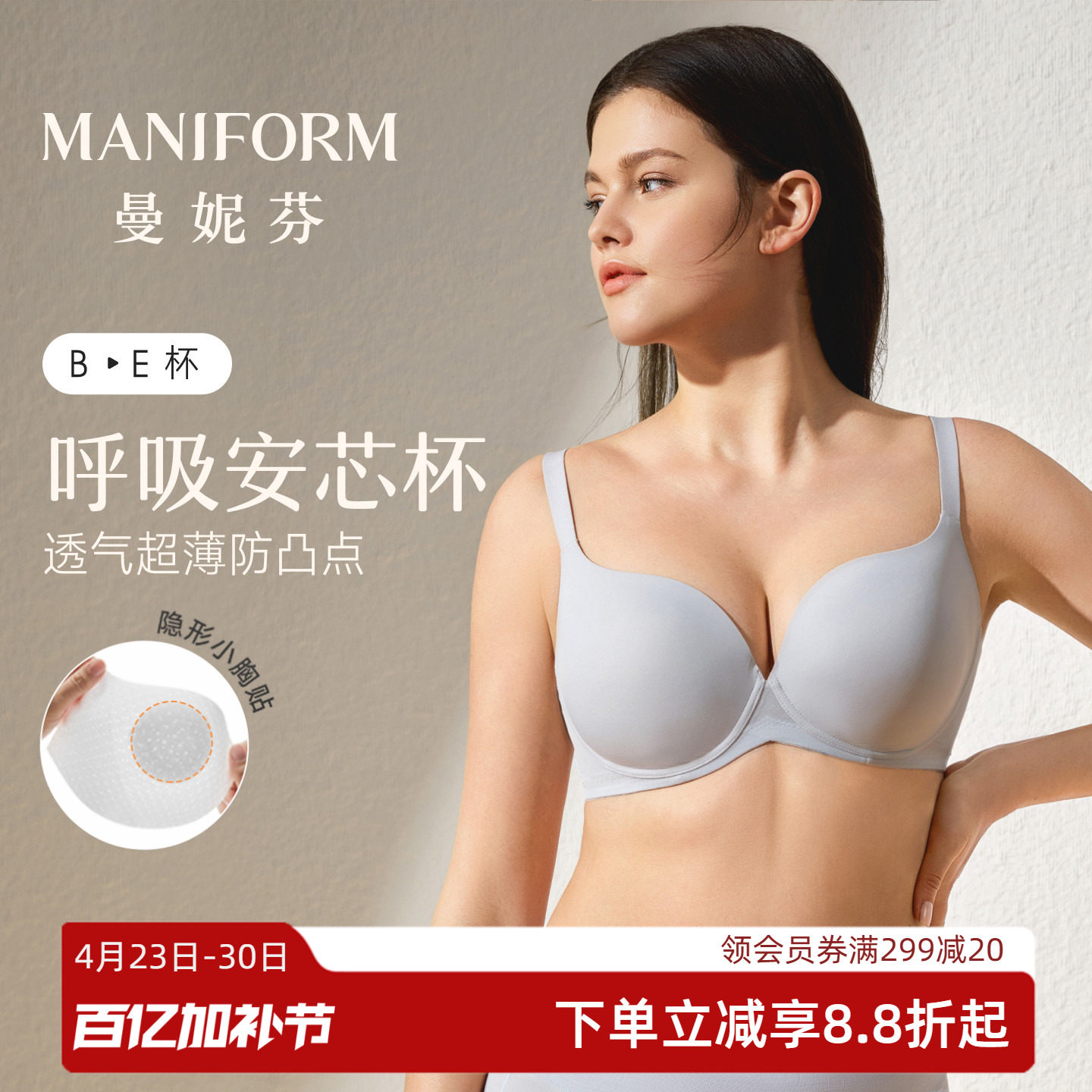 朱珠同款曼妮芬舒适内衣大胸显小文胸软钢圈抗菌超薄无痕女士胸罩