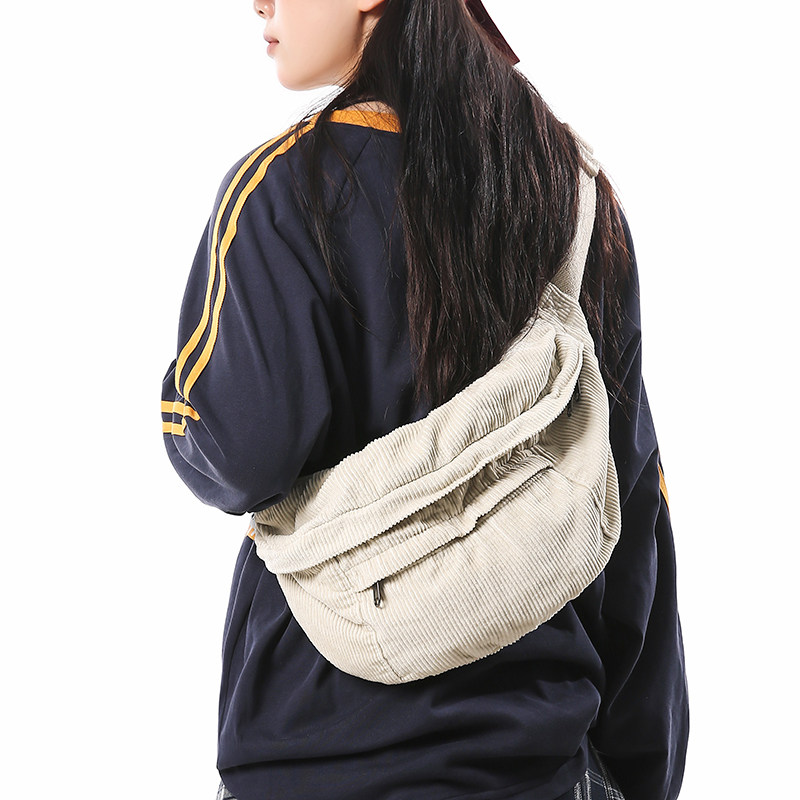 胸包女大容量日系百搭机车骑行包斜挎包灯芯绒单肩包腰包男小背包