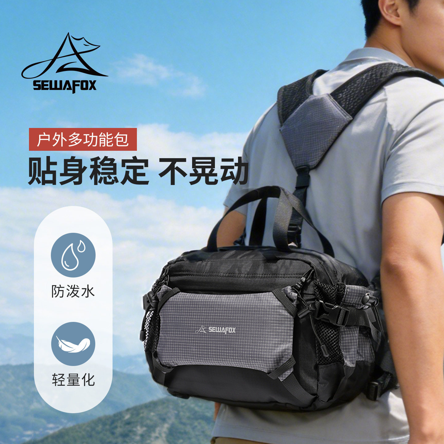 轻量化户外徒步登山包男小背包多功能斜挎包旅游轻便骑行腰包胸包