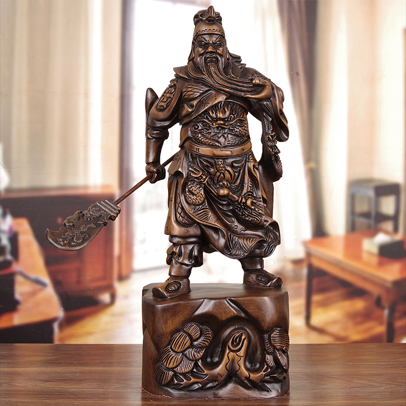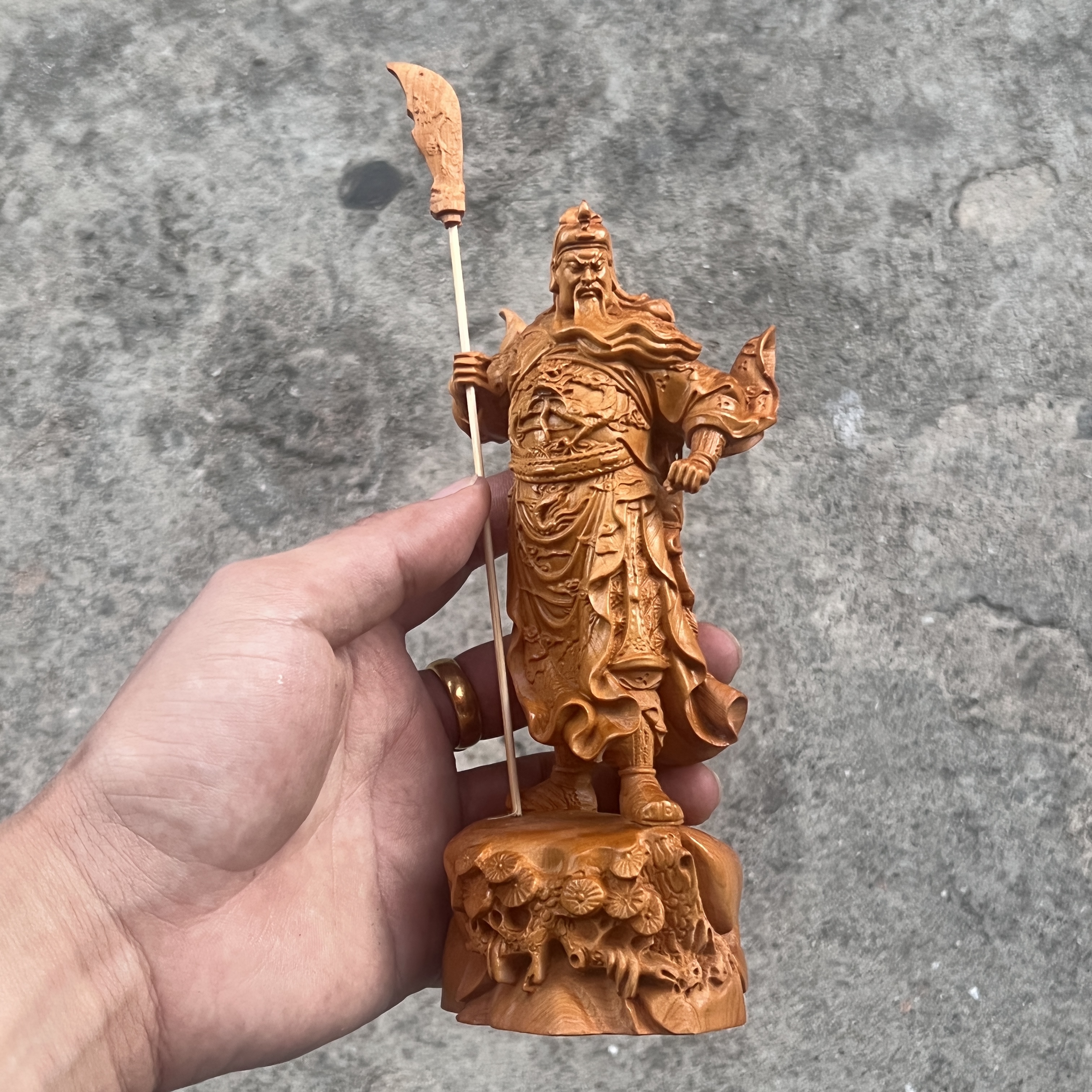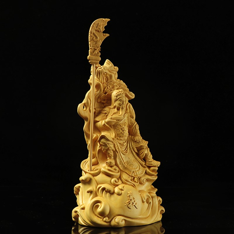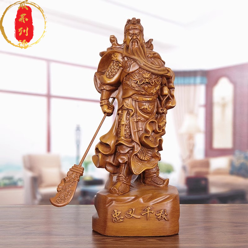 黄杨木雕家居摆件武财神关公原木佛像中式工艺品实木镇宅玄关摆饰