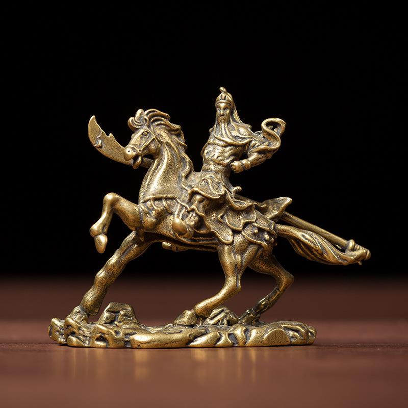 黄铜骑马关公古玩摆件镇宅招财武财神办公室茶几车内饰品家居摆饰