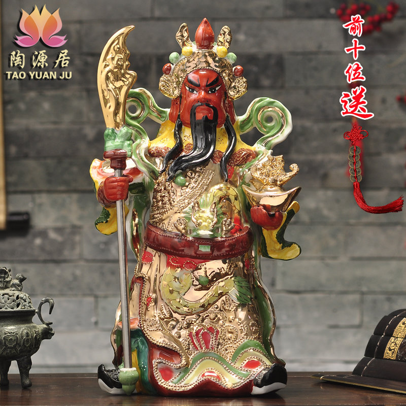 陶瓷珐琅侧刀扶宝关公武财神关二爷神像关羽家居镇宅供奉家居摆件