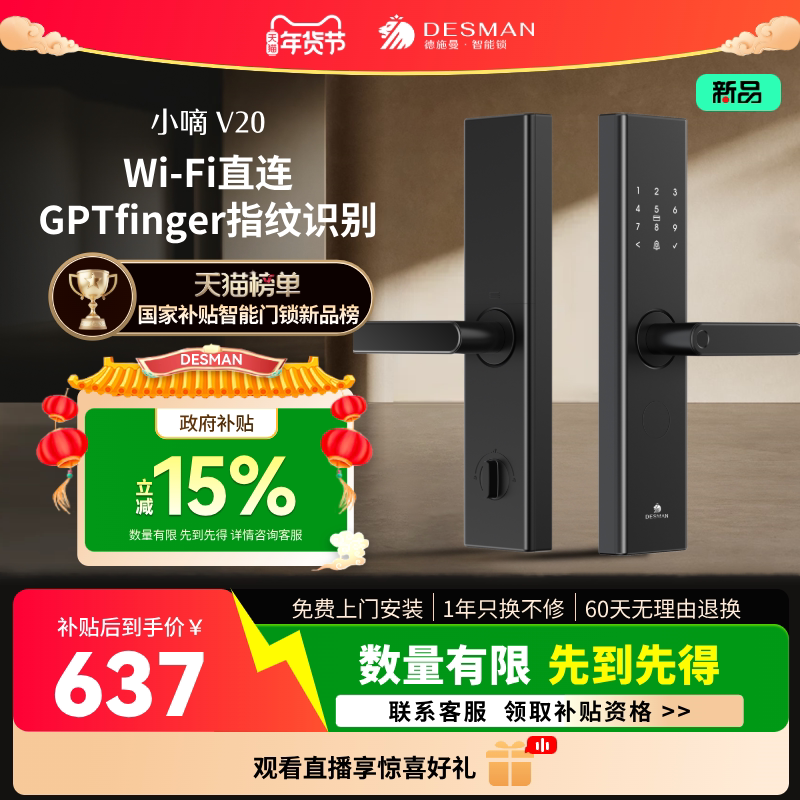 德施曼智能门锁指纹锁密码锁家用入户门电子锁防盗门锁小嘀V20