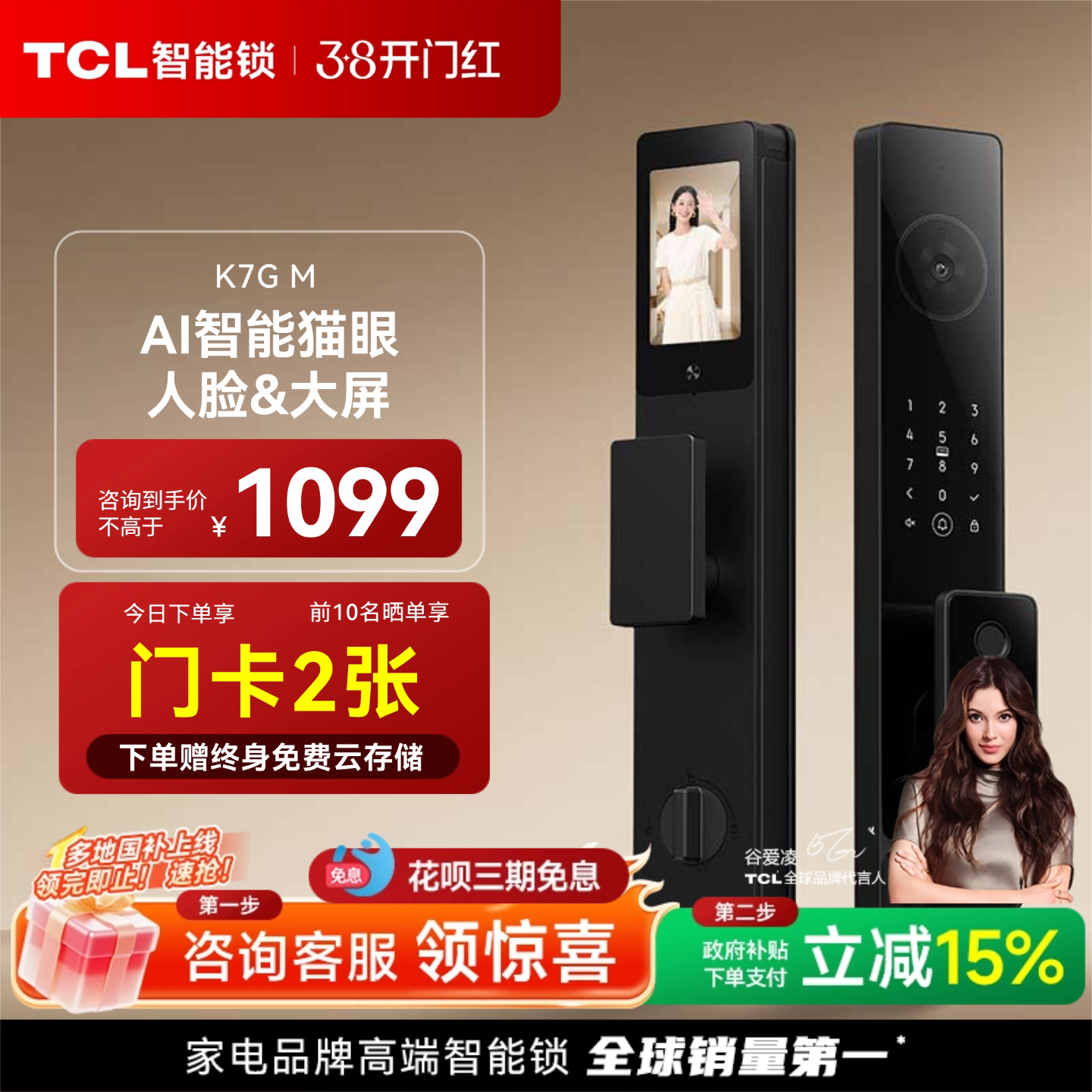 TCL智能锁K7G M哨兵监控人脸猫眼电子锁指纹锁密码锁家用智能门锁