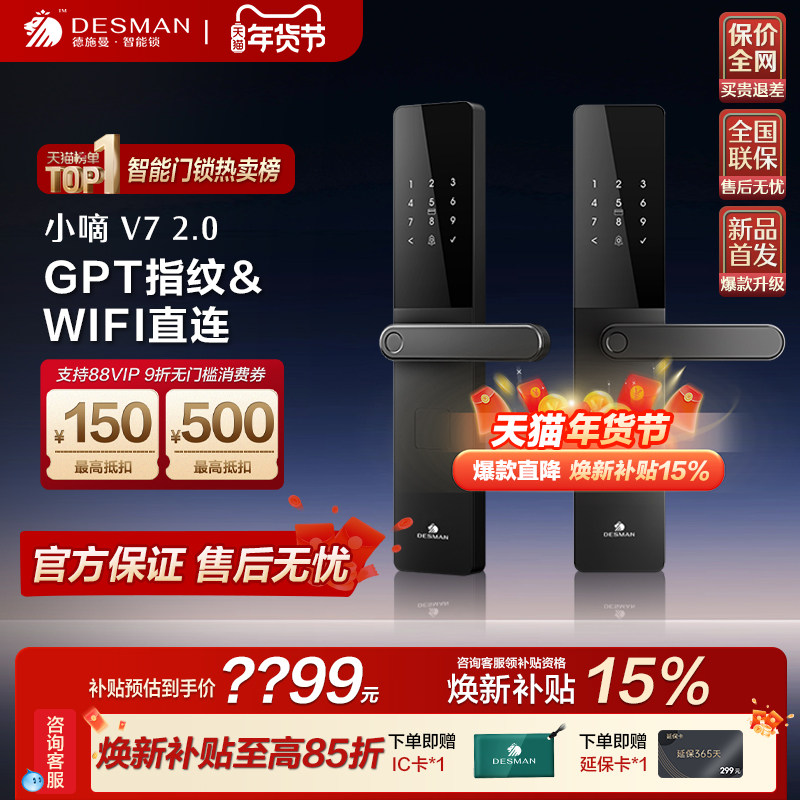 德施曼智能门锁指纹锁密码锁家用入户门电子锁防盗门锁小嘀V20F