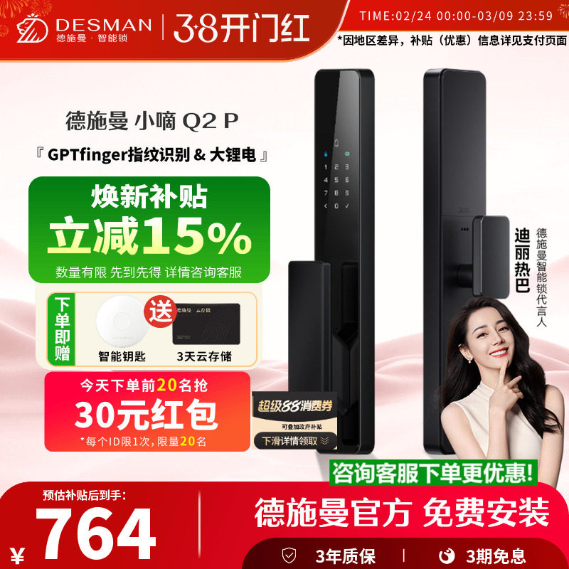 德施曼智能门锁指纹锁密码锁家用入户门防盗门锁小嘀Q2F(下摄)