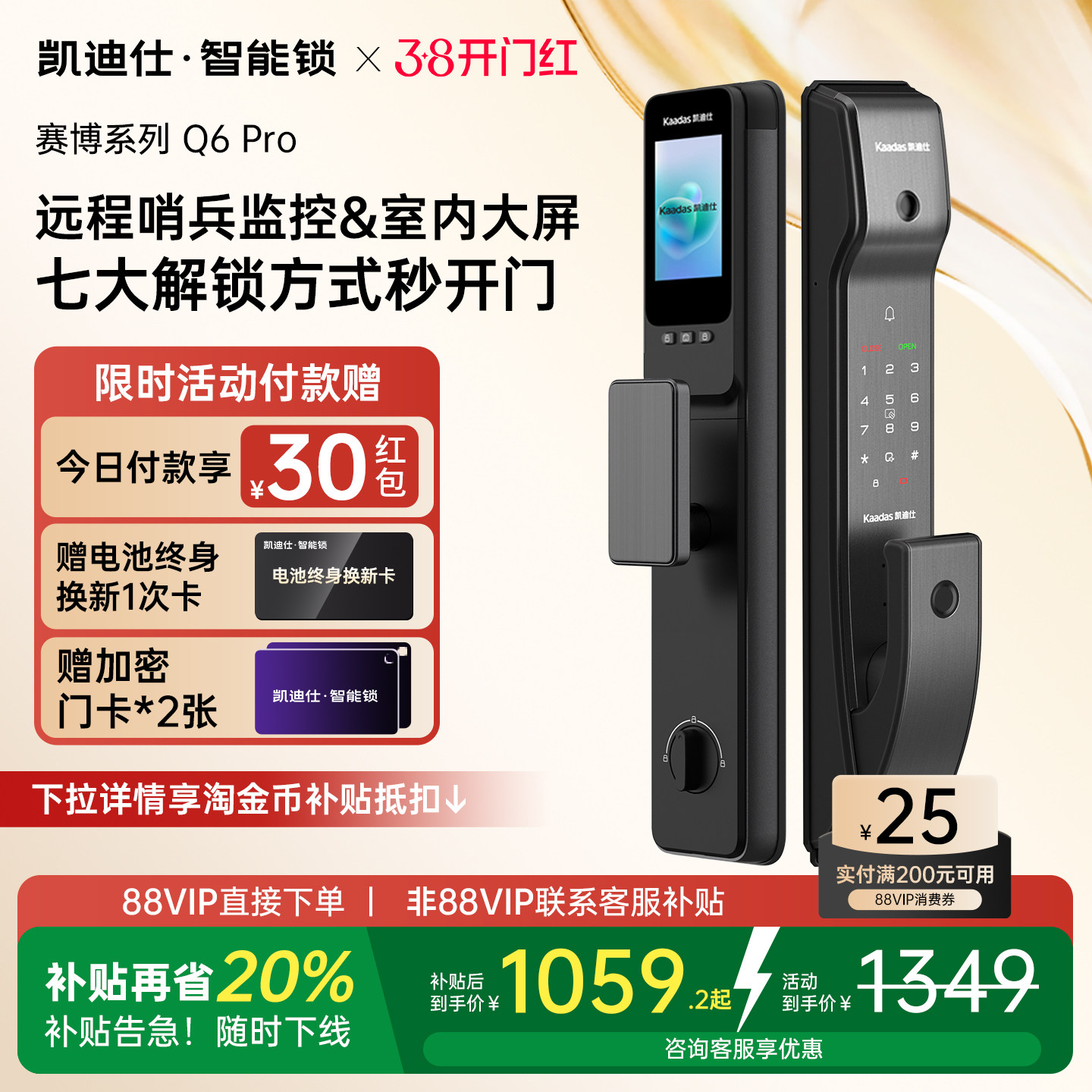 凯迪仕智能门锁Q6Pro家用大屏可视猫眼监控电子防盗指纹锁密码锁