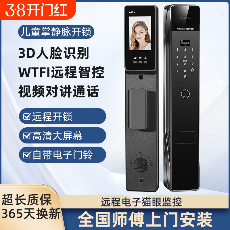人脸识别指纹锁可视电子密码锁家用防盗门锁全自动智能锁智能门锁