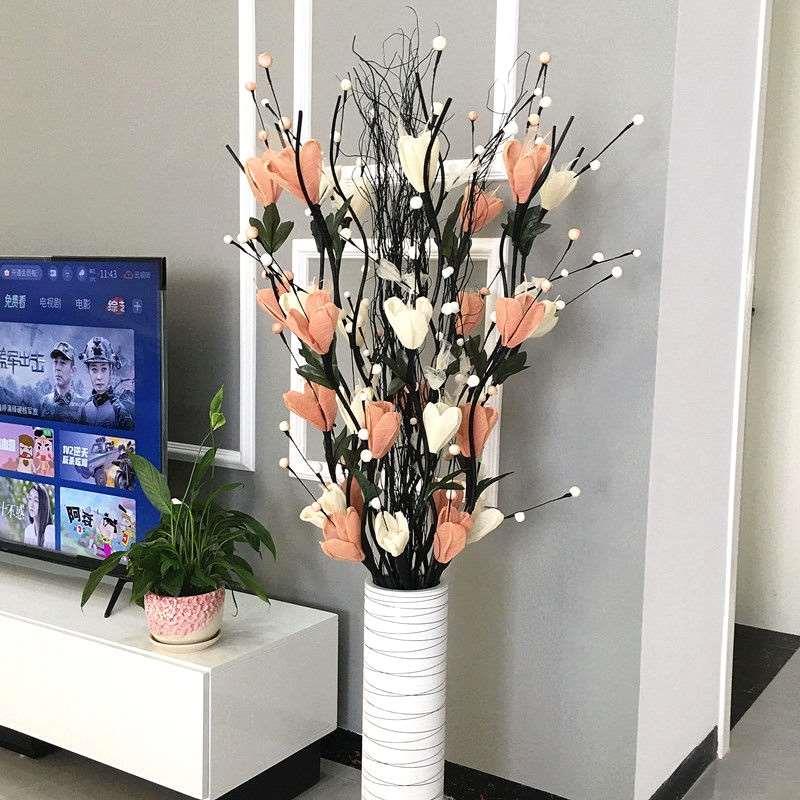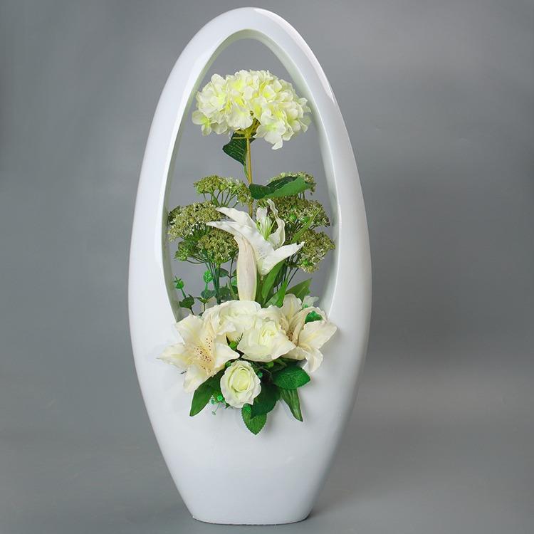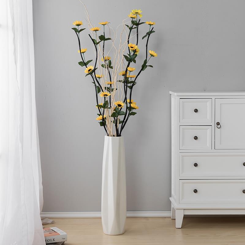 60cm陶瓷大花瓶 落地干花套装 白色简约仿真花花束 家居客厅装饰