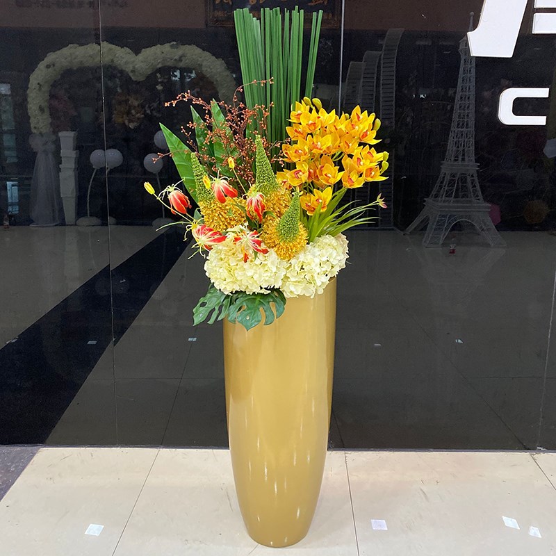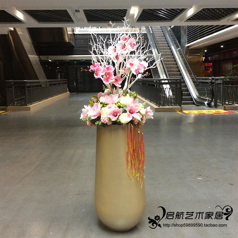 大型玻璃钢落地大花瓶套装欧式客厅玄关酒店售楼部大厅仿真插花艺