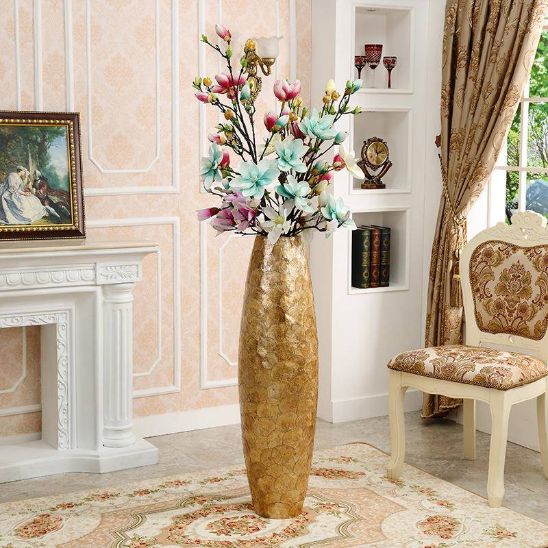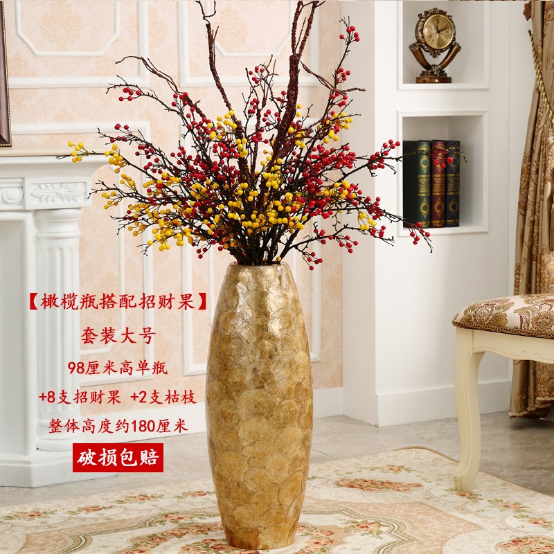 贝壳落地大摆件花瓶仿真花套装现代轻奢客厅干花电视柜装饰橄榄瓶