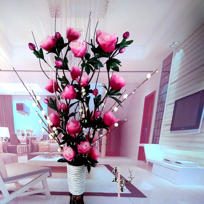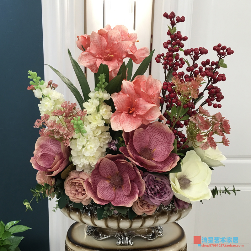 欧式落地花瓶客厅大号插花摆件仿真花套装装饰酒店玄关高干插花大