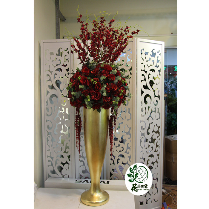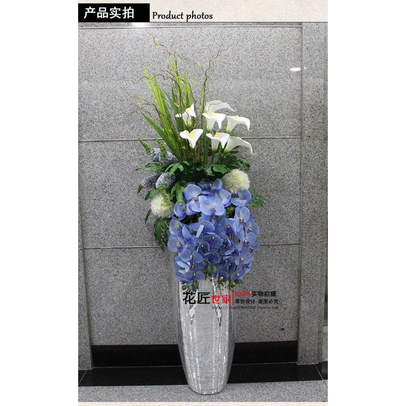 大型落地仿真花成品套装玻璃钢花瓶蝴蝶兰马蹄莲酒店旋转门装饰花