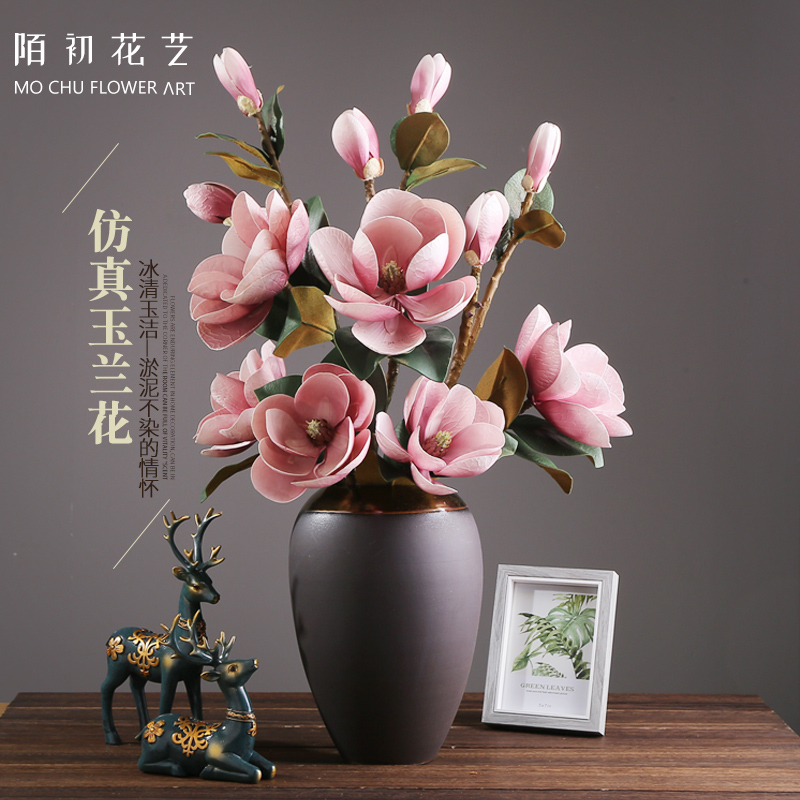 仿真大玉兰花假花客厅落地装饰花瓶插套装摆设餐桌花摆件高端摆花