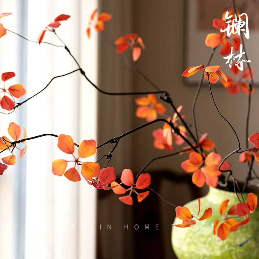 镧林侘寂风仿真花红色观音莲假花束插花瓶套装客厅落地长杆装饰花