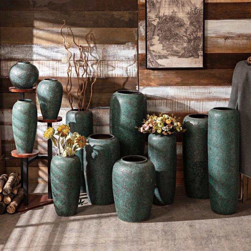 景德镇手工落地花瓶套装餐厅仿真花器客厅大号陶罐瓷器装饰品摆件