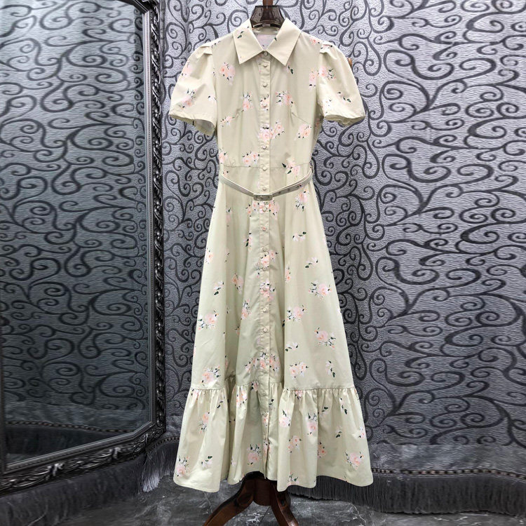 初溯家2026夏季新款欧货女装 印花翻领单排扣收腰鱼尾裙长连衣裙D