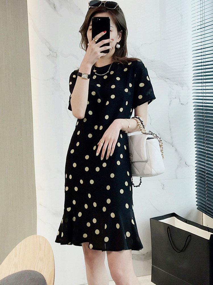 欧洲站2025夏新款法式轻熟小黑裙宽松显瘦连衣裙女波点鱼尾裙子
