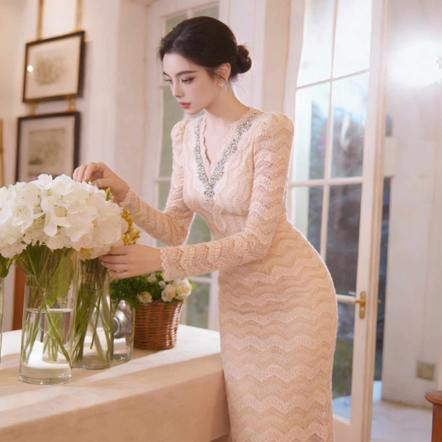 - 钉珠蕾丝连衣裙