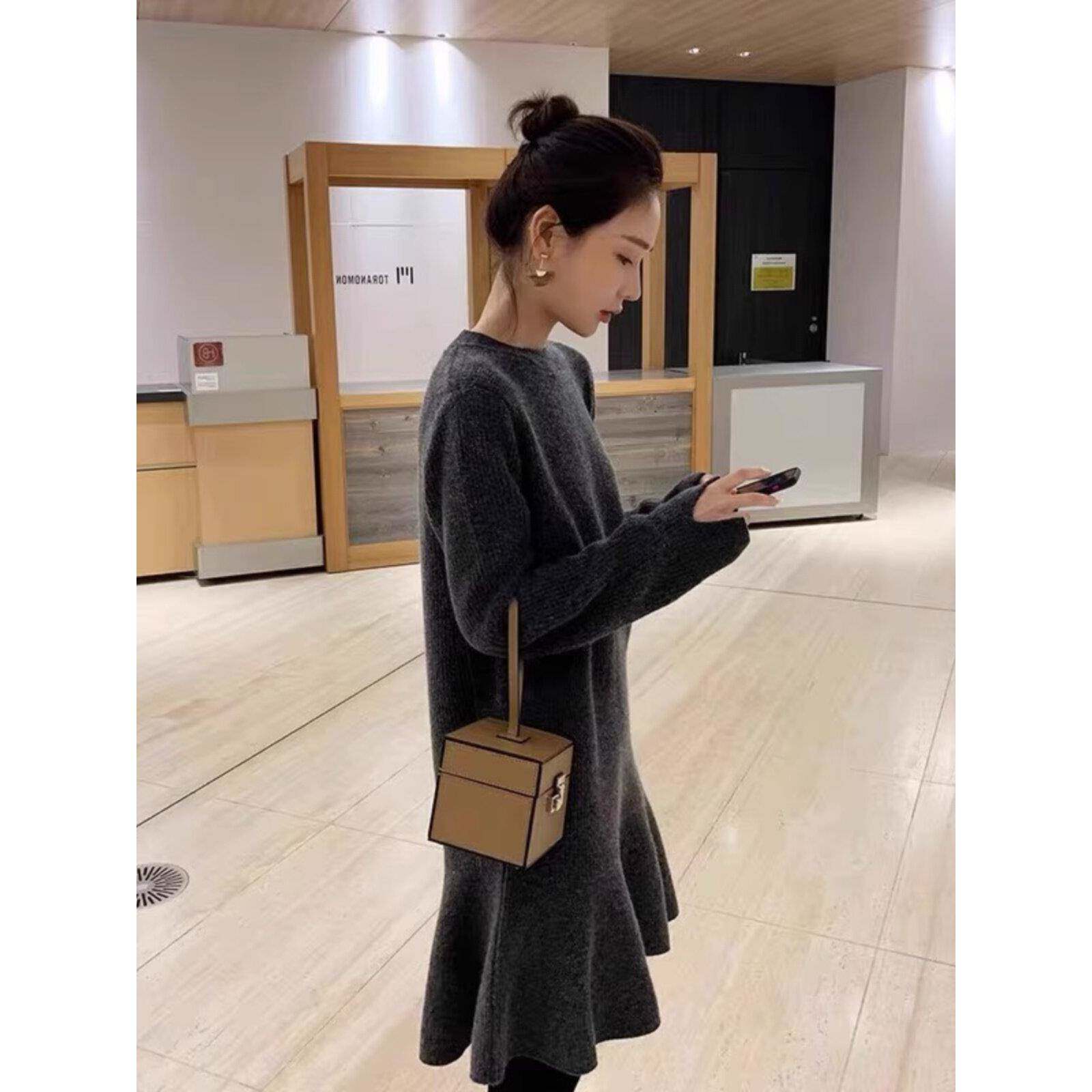 欧洲站2025秋冬新款温柔风针织连衣裙女装中长款内搭鱼尾毛衣裙子