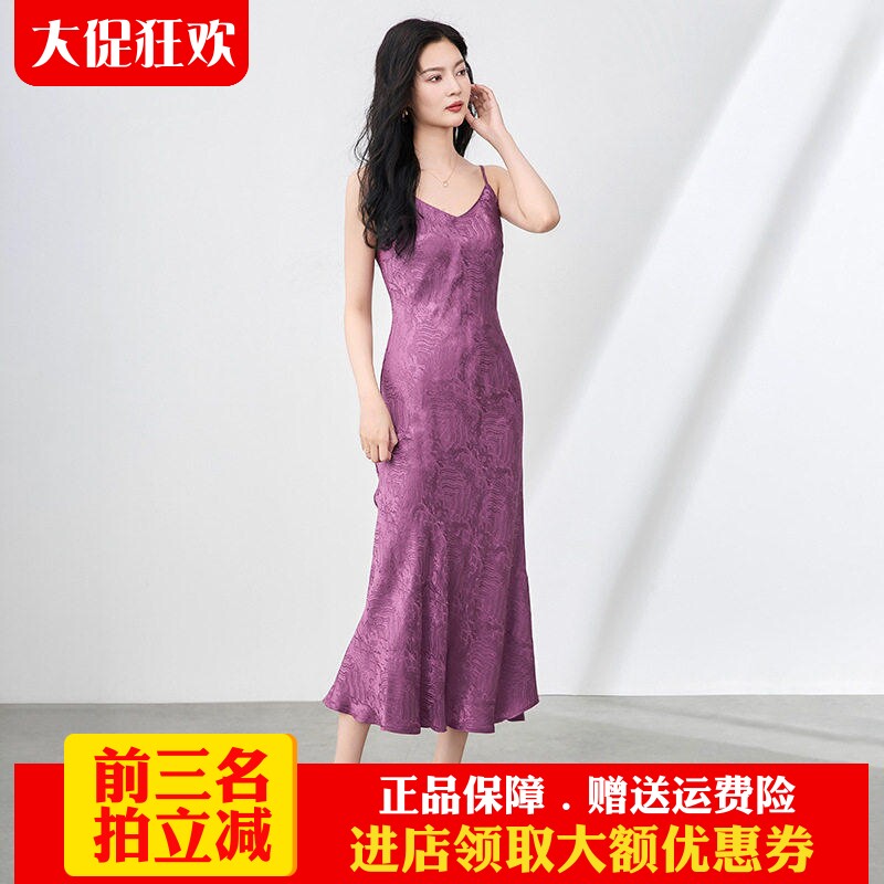 欧洲站2025夏新款法式气质国风提花醋酸缎垂感收腰吊带鱼尾连衣裙