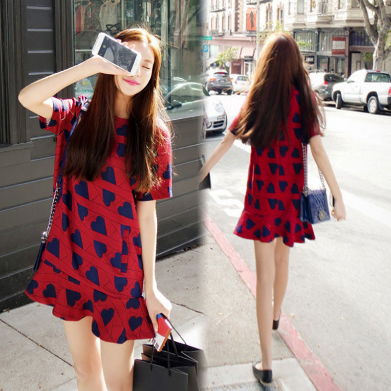 - 韩版印花连衣裙a字裙