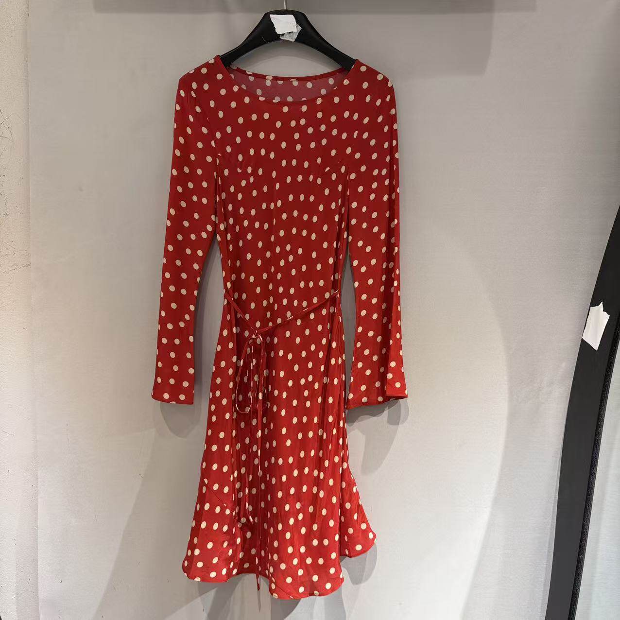 欧洲站2026新款法式波点系腰显瘦喇叭袖气质人丝鱼尾连衣裙26292