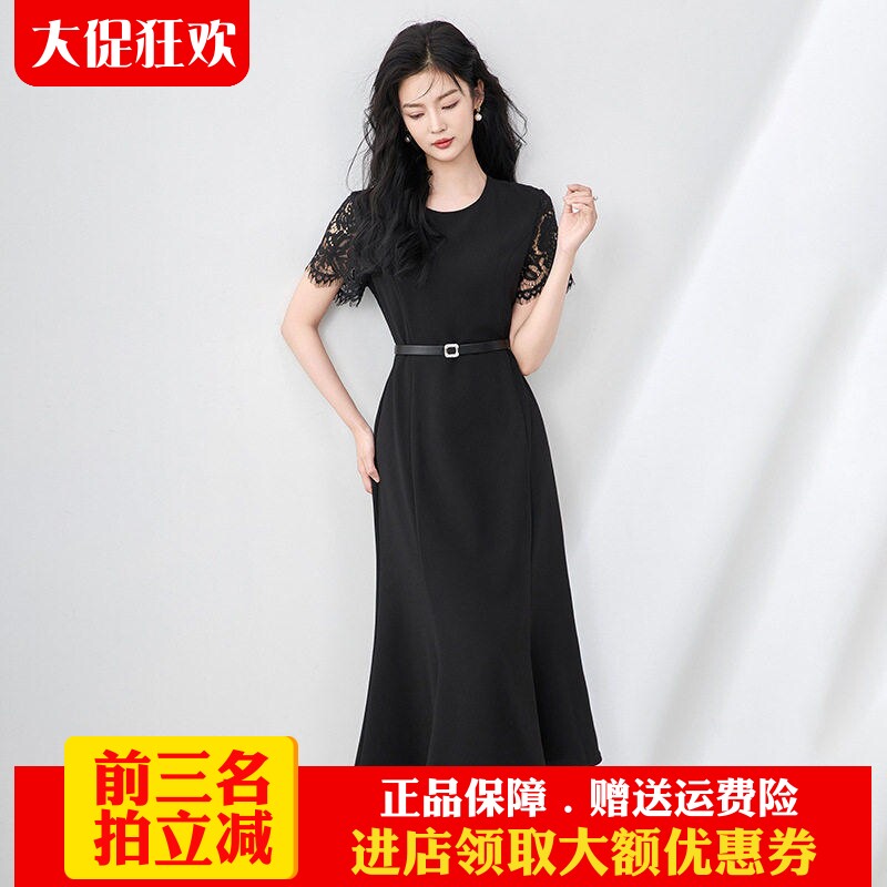 欧洲站2025夏季新款气质时尚优雅通勤蕾丝钩花拼接显瘦鱼尾连衣裙