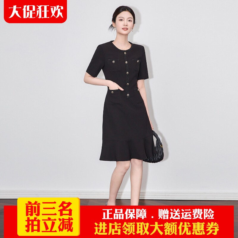 欧洲站2025夏季新款高品质职业装修身气质小香风短袖鱼尾连衣裙正