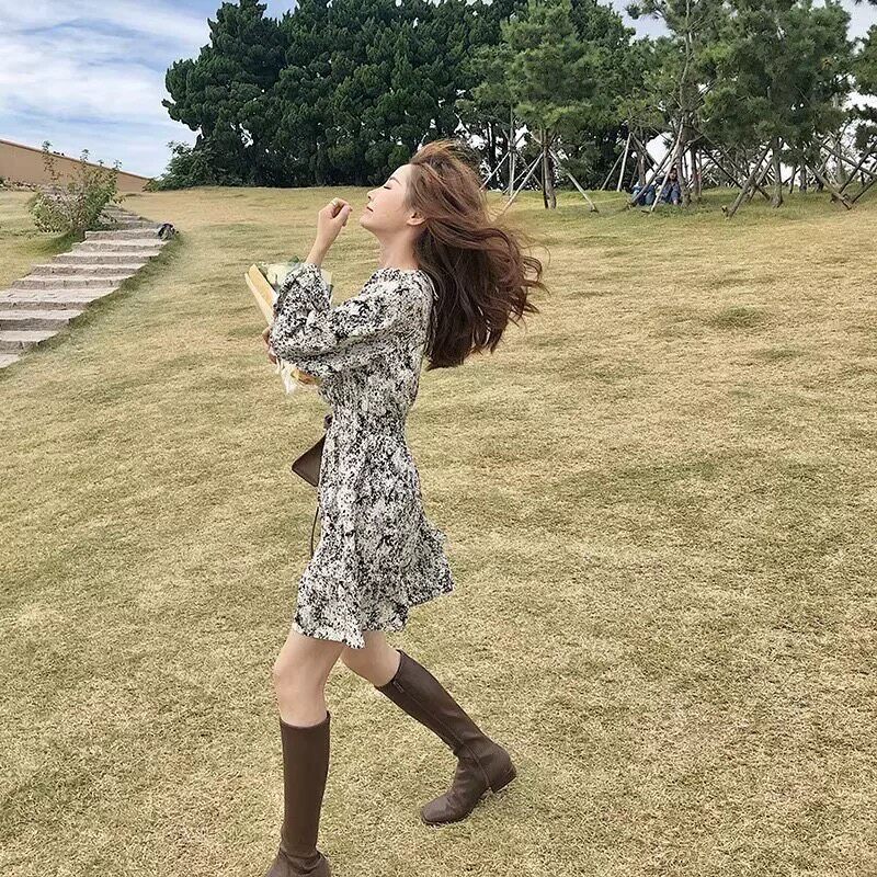 欧洲站春装新款法式茶歇减龄小个子显瘦鱼尾裙内搭长袖碎花连衣裙