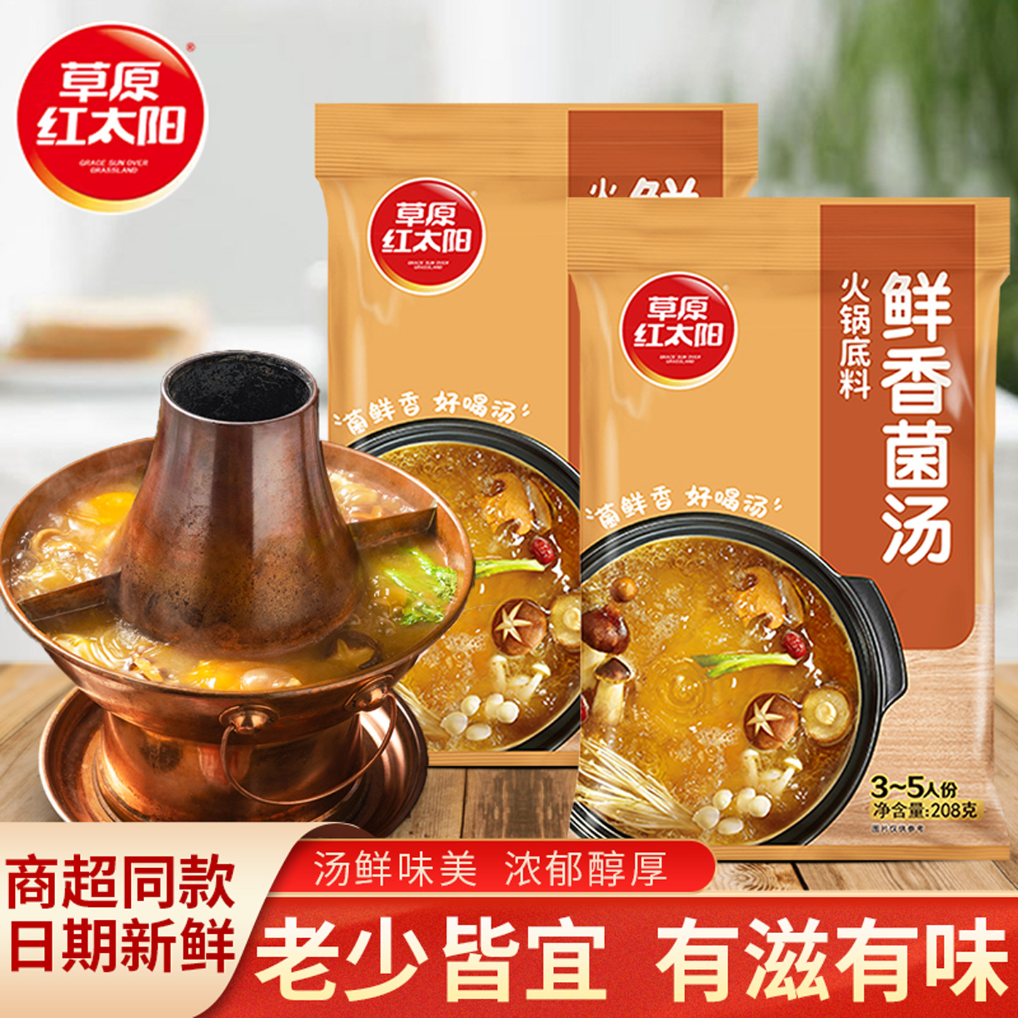 草原红太阳火锅底料鲜香菌汤208g炖煲汤不辣麻辣烫底料冒菜包邮
