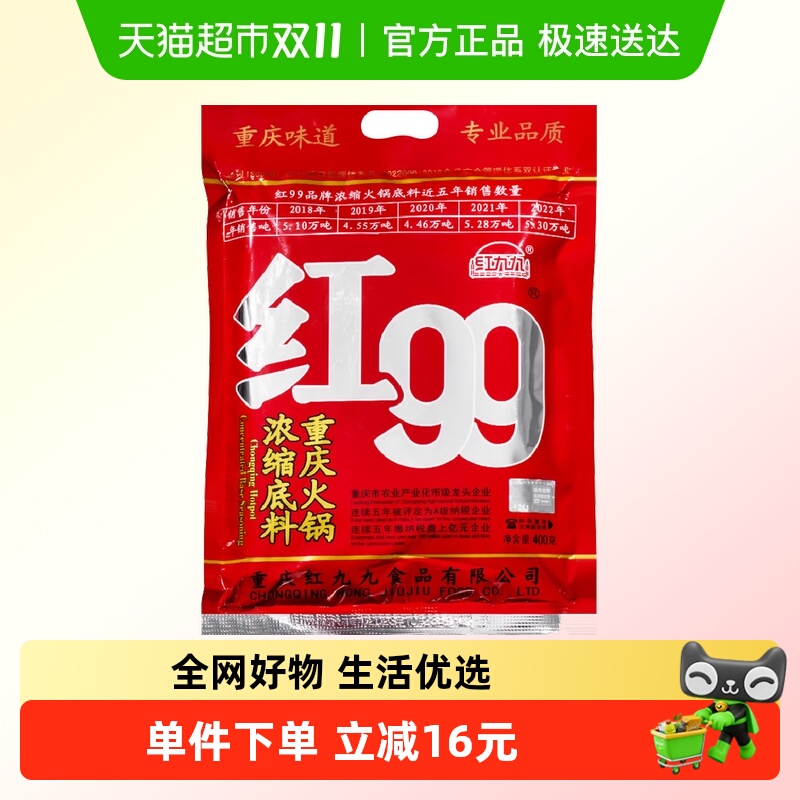 包邮 正宗重庆红99火锅底料 红九九浓缩火锅底料 牛油老火锅 400g