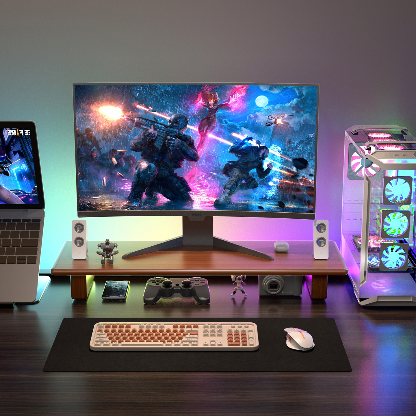 laricare桌面美学增高架 ins双层收纳支架 轻奢实木质电脑置物架