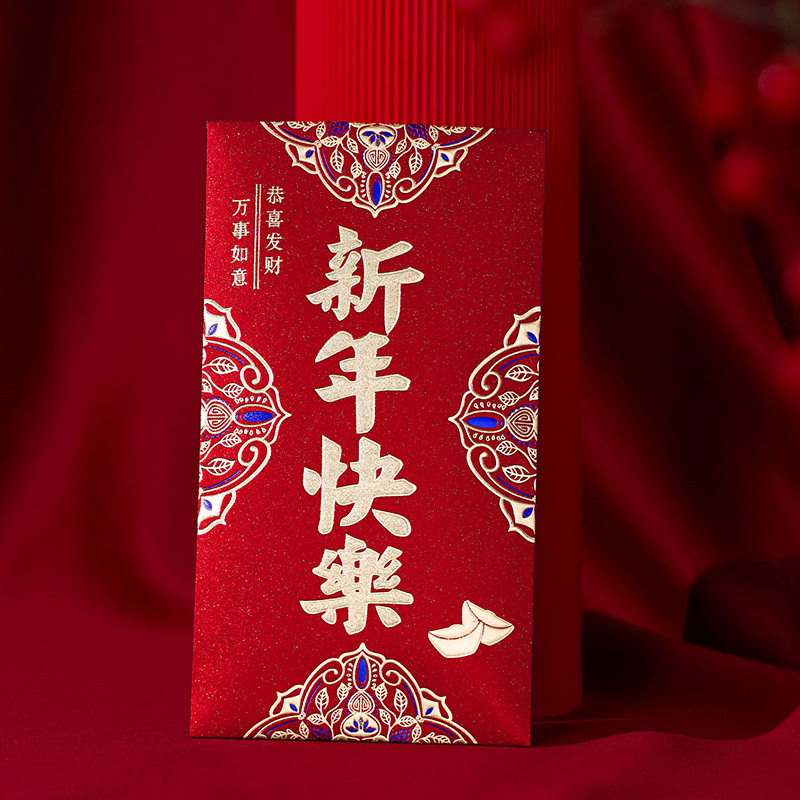 元旦春节新年快乐红包袋硬纸烫金百千元红包压岁包过年利是封包邮