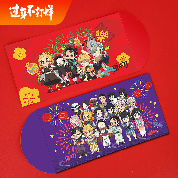 台湾爆款虎年卡通日本动漫鬼灭之刃新年红包袋利是封长短厚款包邮