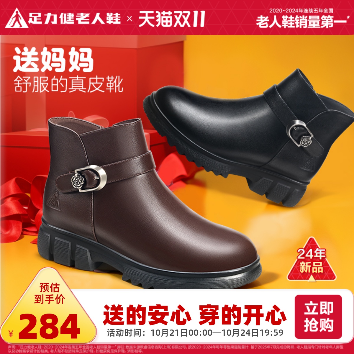 足力健旗舰店2025年冬季中年时尚女鞋妈妈短靴软底靴子真皮鞋女