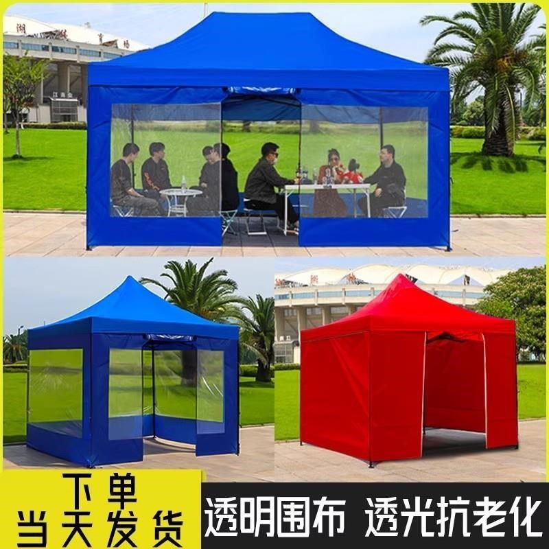户外帐篷遮阳棚四脚角大伞雨棚折叠伸缩式夜市摆摊用帐篷透明围布