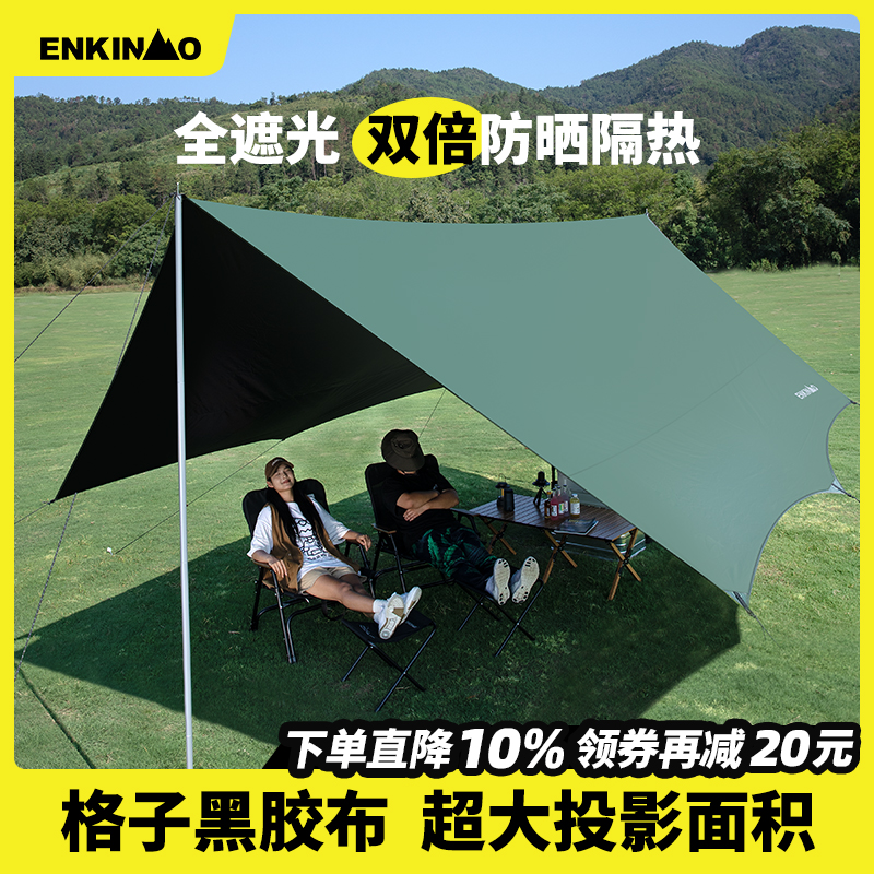 恩可莫天幕户外帐篷遮阳棚露营野营桌椅六件套便携黑胶遮阳防雨布