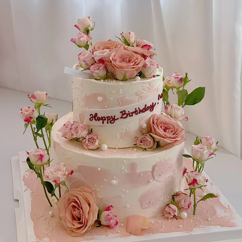 双层鲜花翻糖闺蜜送女友女神妈妈生日蛋糕订婚北京天津上海全国送
