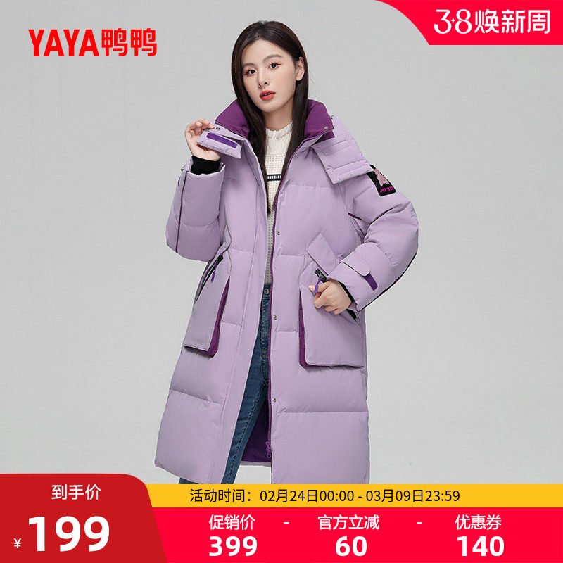 鸭鸭羽绒服女2025秋冬反季过膝中长款连帽休闲百搭加厚鸭绒外套A