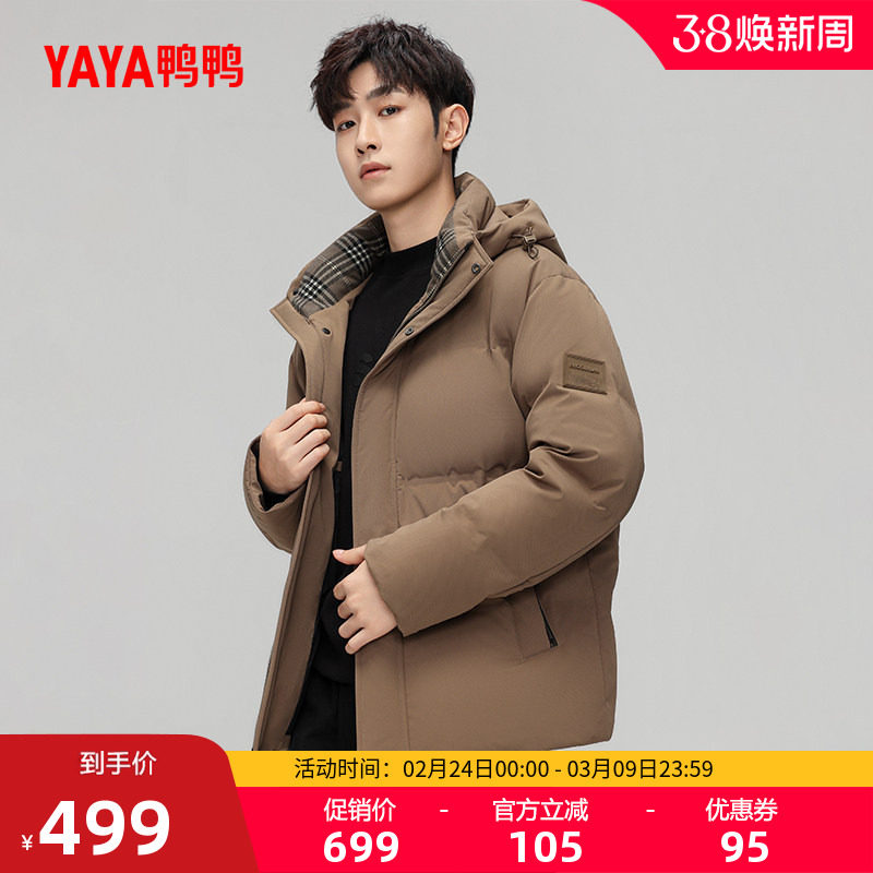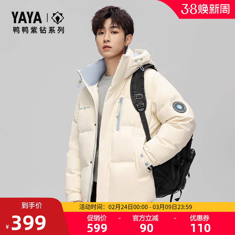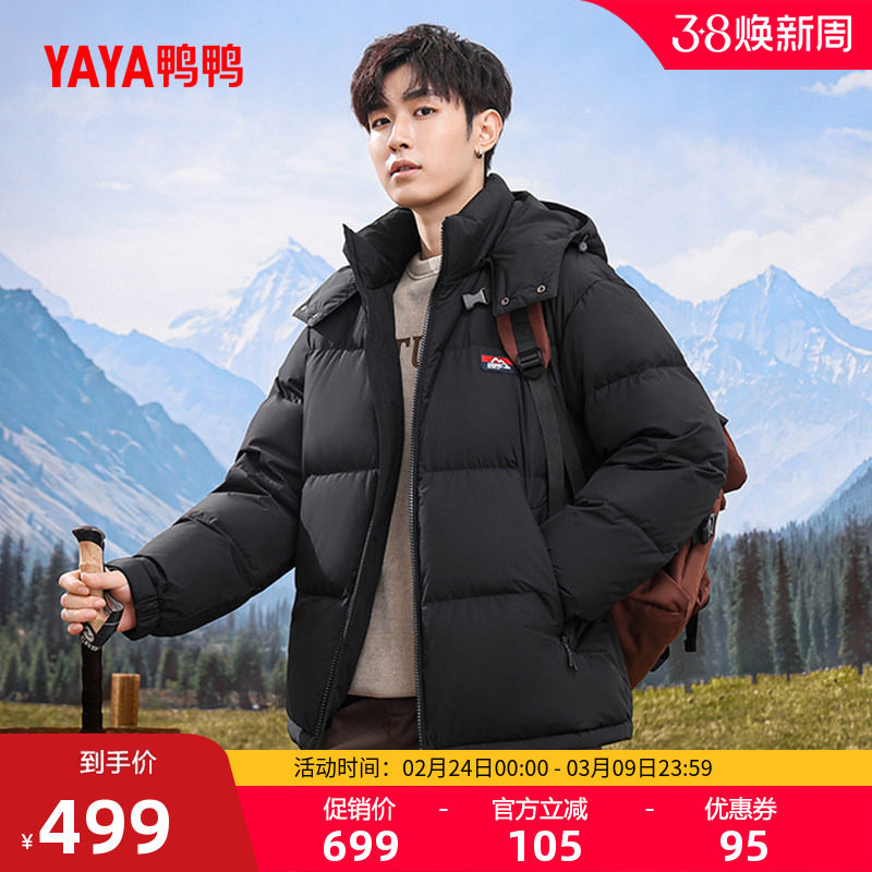 鸭鸭羽绒服男冬季2025冬新短款休闲面包服连帽保暖加厚鸭绒外套A